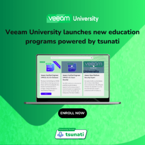 Tsunati, a Veeam Accredited Service Partner, has joined forces with Veeam to launch Veeam University, an innovative online platform offering flexible, on-demand technical certification training. Veeam University features 24/7 clickable labs, video demos, and in-depth technical courses, preparing learners for Veeam certification exams like the Veeam Certified Engineer (VMCE). “Our